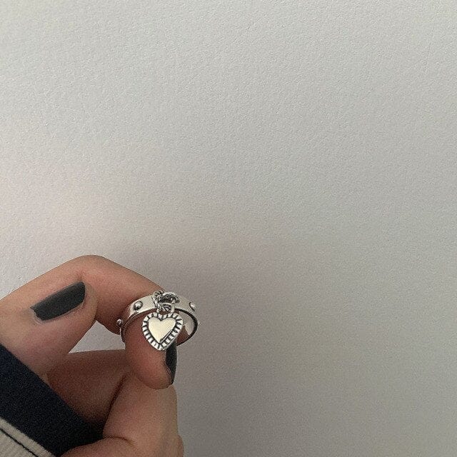 Kinel 925 Sterling Silver Heart Rings Silver Punk Open Rings for Women Silver 925 Gift Fine Party Jewelry