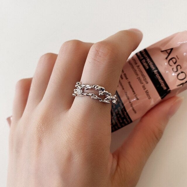 Kinel 925 Sterling Silver Irregular Ring Europe Handmade Concave Convex Punk Rock Open Rings for Women Jewelry Bijoux New
