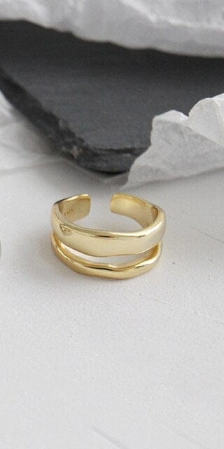 Kinel 925 Sterling Silver Open Ring Normcore INS Irregular Line Double Layer Ring Femme Punk Ring Accessories Gift