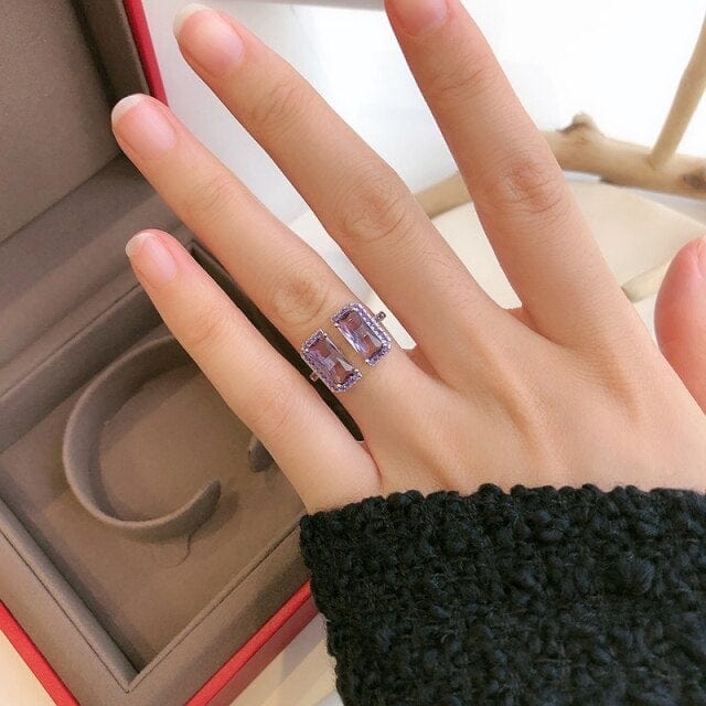 Kinel 925 Sterling Silver Wedding Purple Green Natural Emerald Party Fashion Wild Noble Ring Jewelry Female Christmas Gift