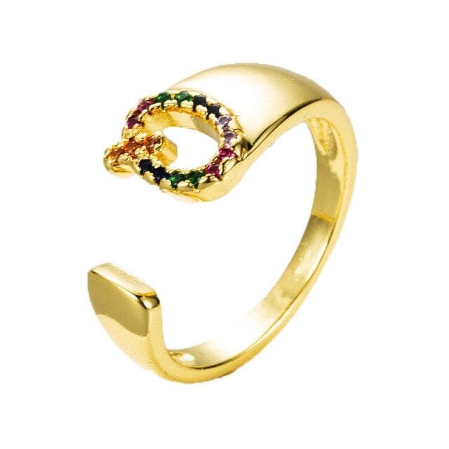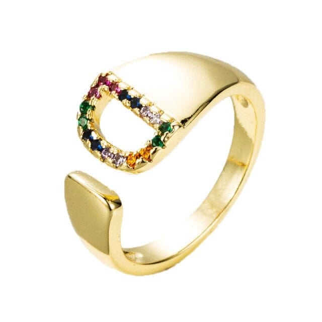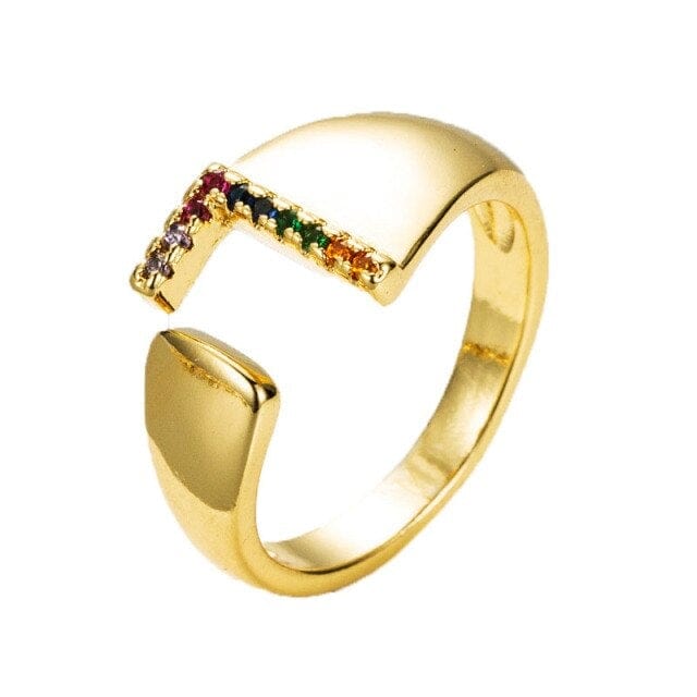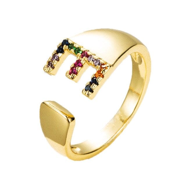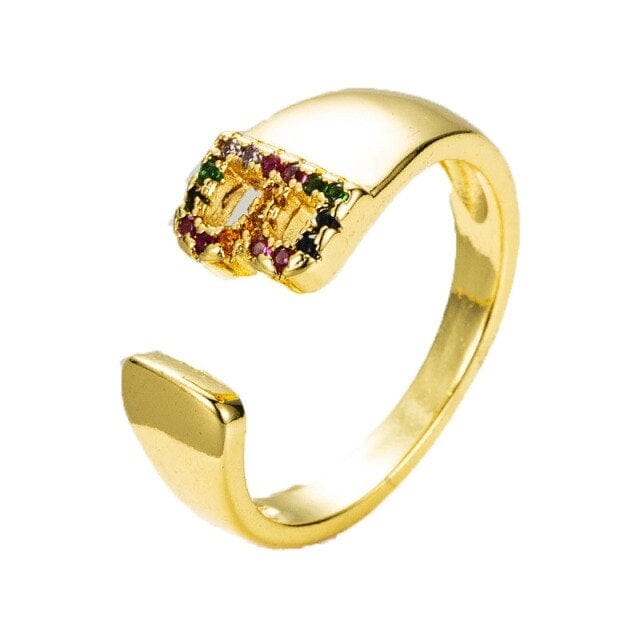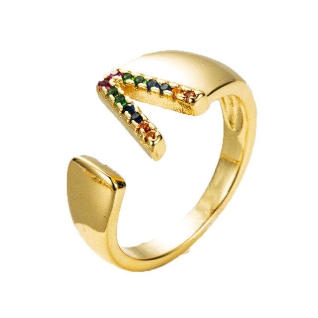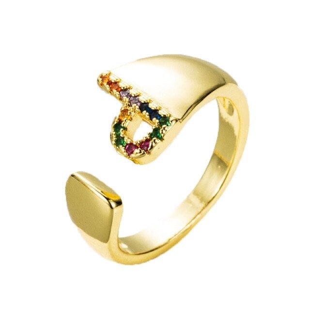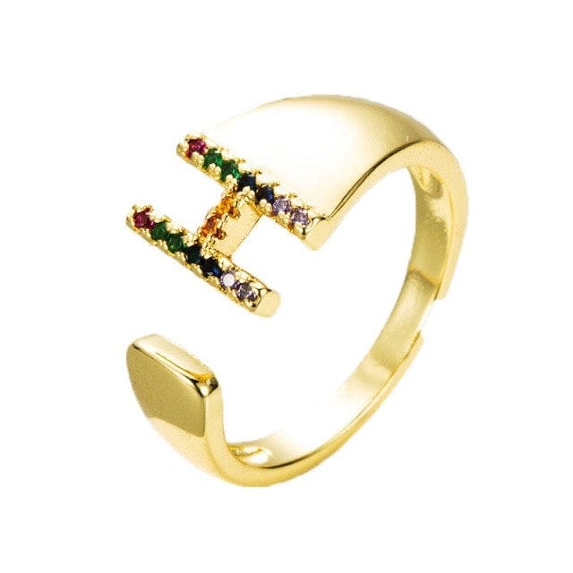 Kinel Adjustable A-Z Initial Ring Bohemian Copper Zircon Rainbow Letter Ring for Women Girls Party Wedding Jewelry Gift