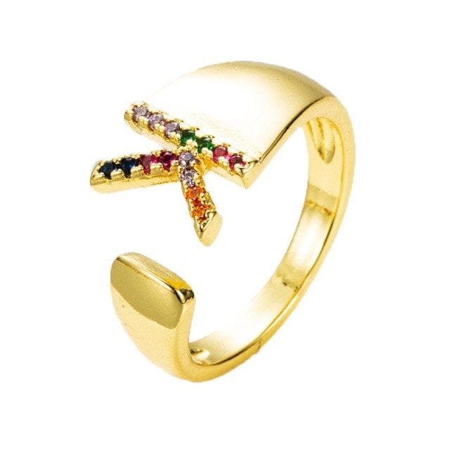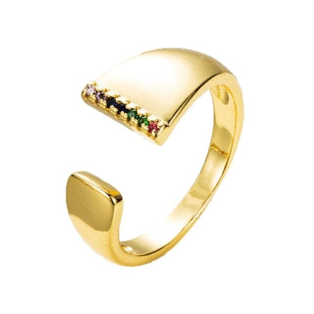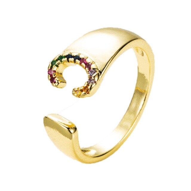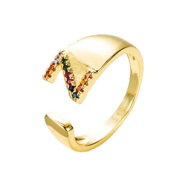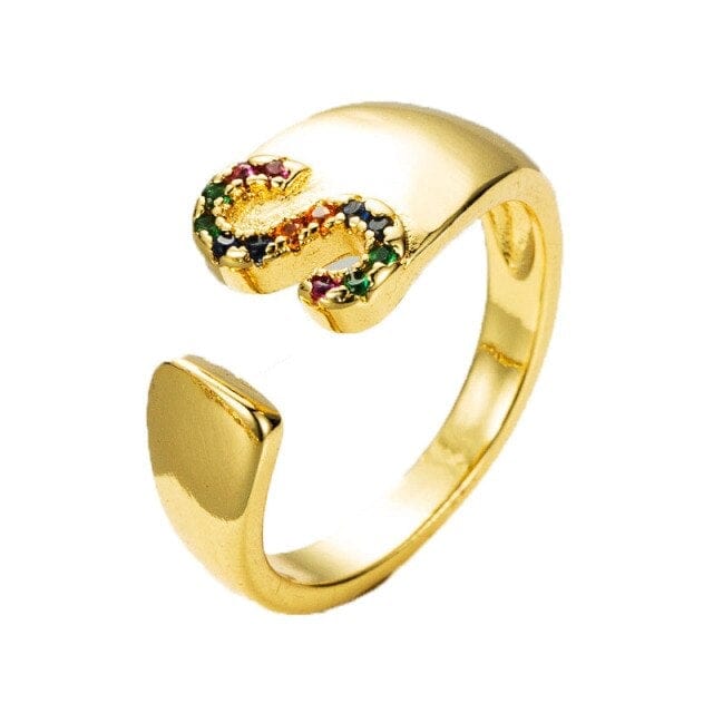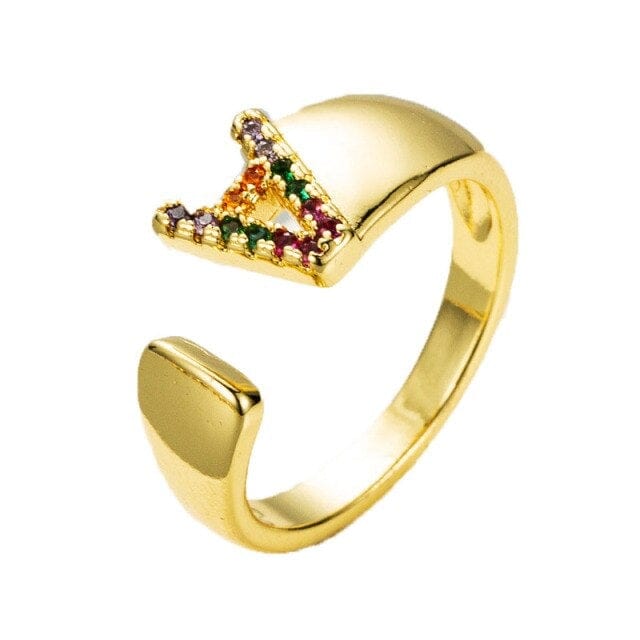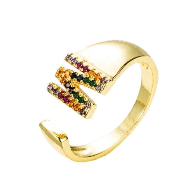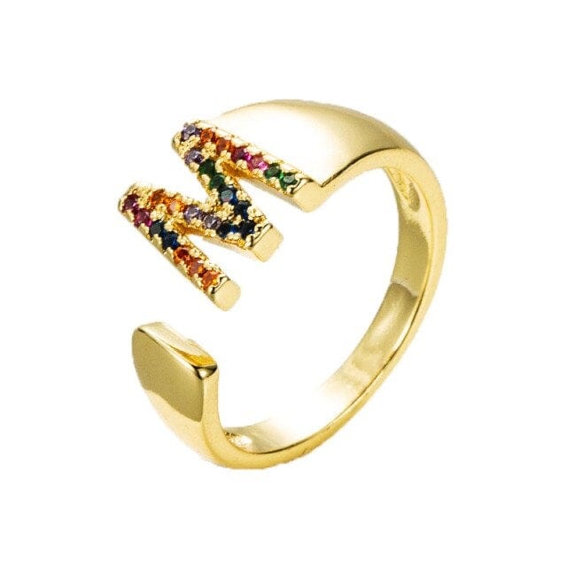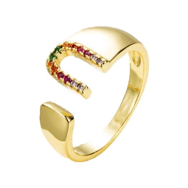 Kinel Adjustable A-Z Initial Ring Bohemian Copper Zircon Rainbow Letter Ring for Women Girls Party Wedding Jewelry Gift