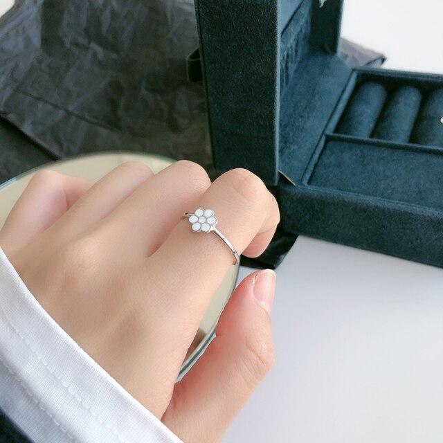 Kinel Adjustable Exquisite Silver 925 Jewelry Resizable Enamel Flower Rings for Women Wedding Engagement Anillos