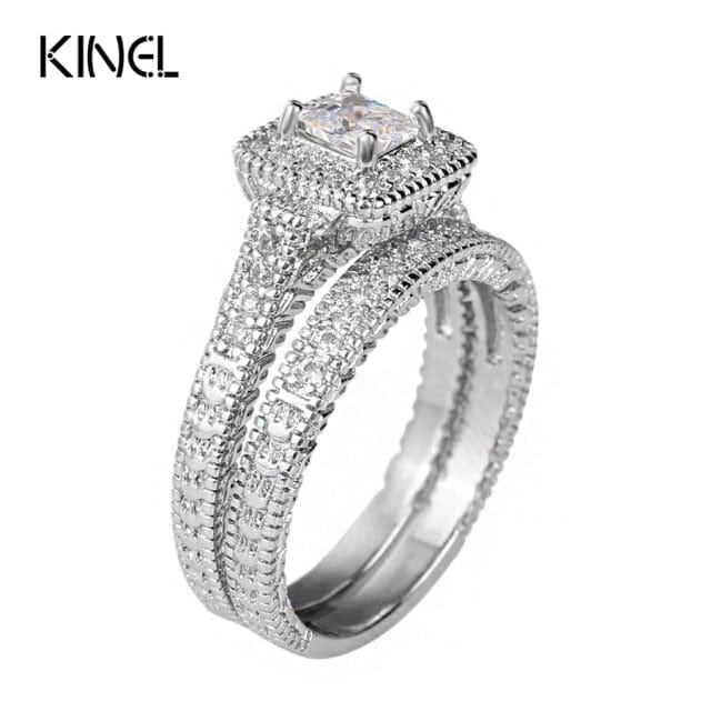 Kinel Blue Zircon 1.25ct Ring Sets Best Craft Princess Cut CZ With Micro Round CZ Paved Engagement Ring Sets For Bridal Jewelry