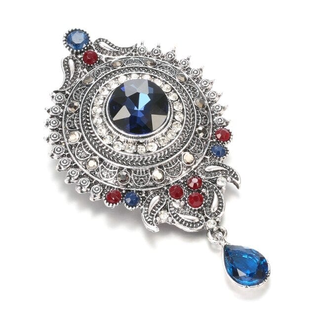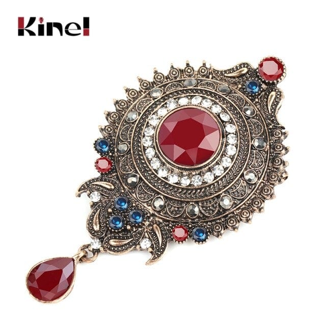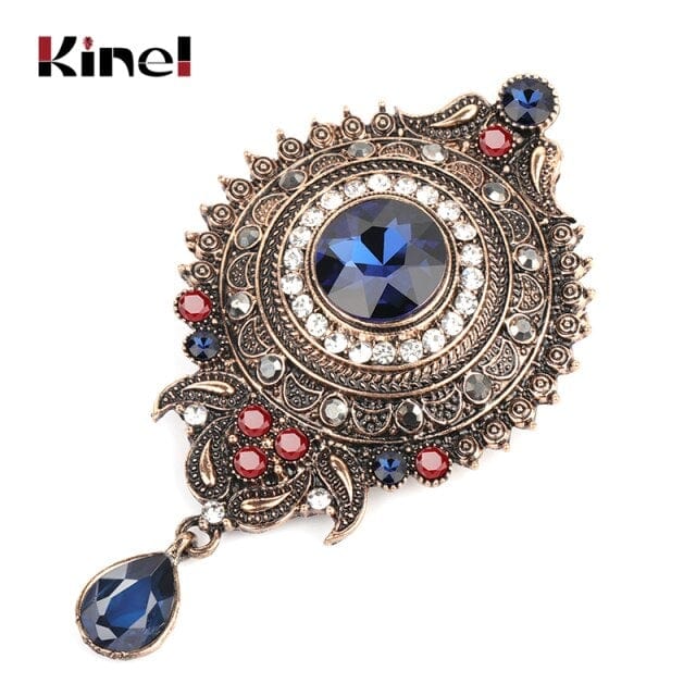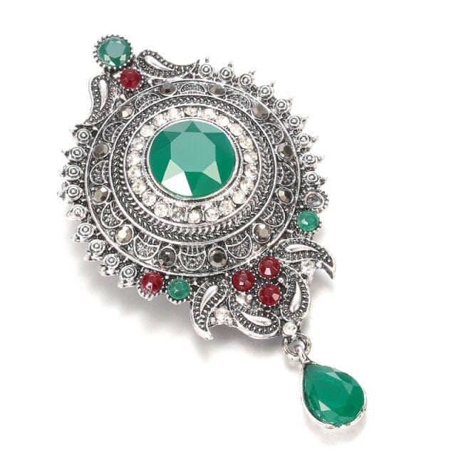 Kinel Boho Tibetan Silver Green Crystal Flower Brooch Pins Metal Scarf Clothing Christmas Gift Banquet Vintage Wedding Jewelry