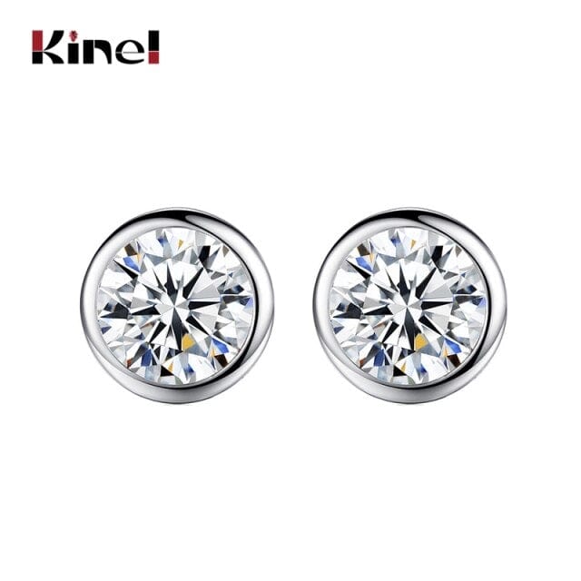 Kinel Classic Fashion Silver Color Engagement Earring Round Zircon Stud Earrings For Women Men Gift Wedding Jewelry