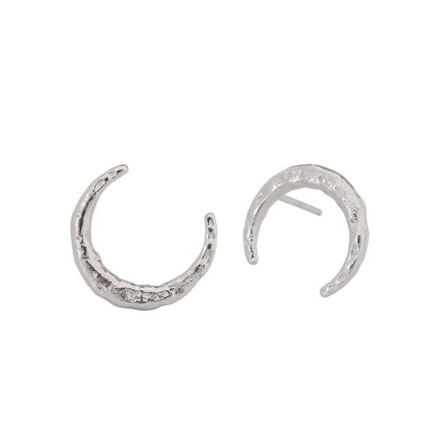 Kinel Earrings Korean 925 Sterling Silver 18K Gold Silver Uneven Moon Earrings Simple Crescent Stud Earrings for Women
