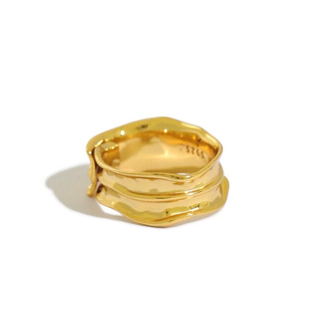Kinel Fashion 925 Sterling Silver Irregular Adjustable Finger Rings Party Wedding Jewelry Making 18K Plating Real Gold Ring