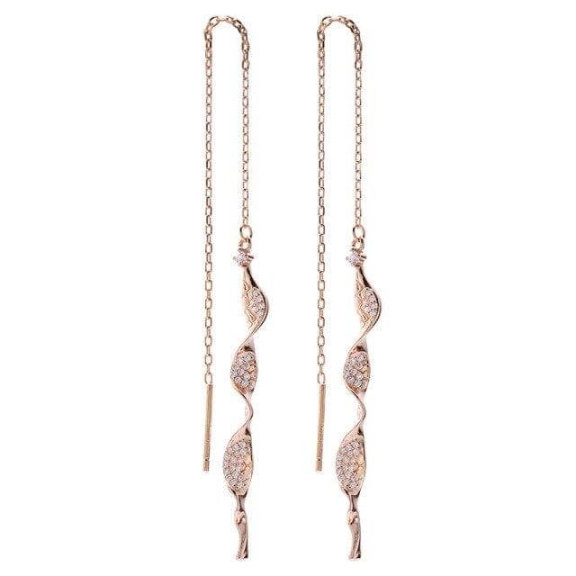 Kinel Fashion 925 Sterling Silver Shining Star Clear Zircon Long Chain Wave Drop Earrings for Women Wedding Earrings Jewelry