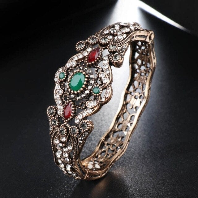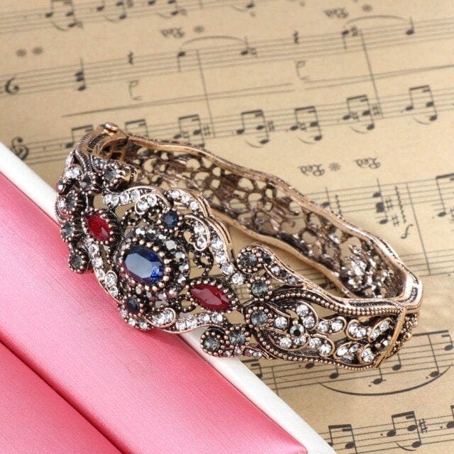 Kinel Fashion Bangle Turkish Jewelery Antique Gold Crystal Flower Charm Big Bracelets For Women Wedding Party Accessories Gift