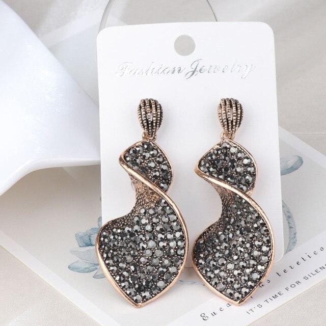 Kinel Fashion Bohemia Drop Earrings For Women Antique Tibetan Silver Leaf Crystal Earring Turkish Inida Ethnic Wedding Jewelry