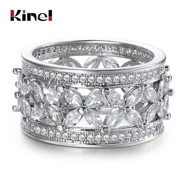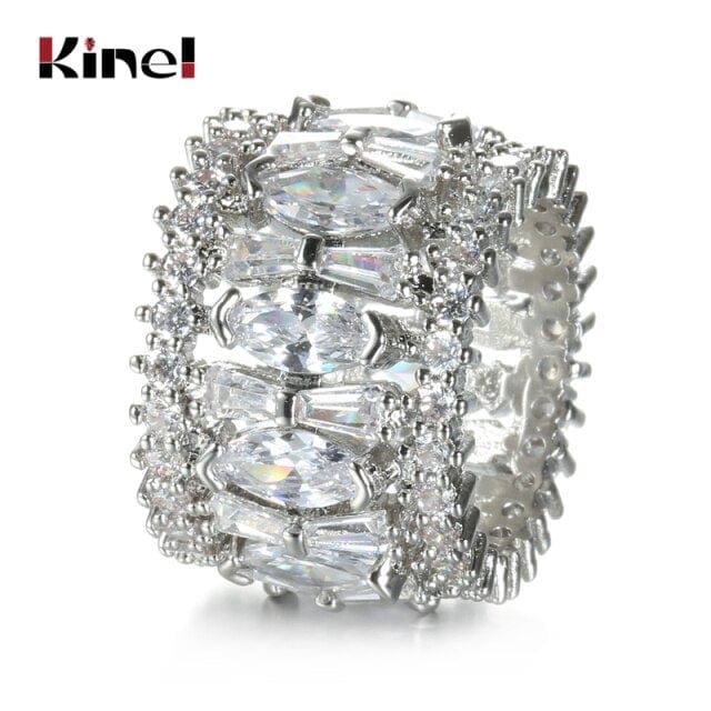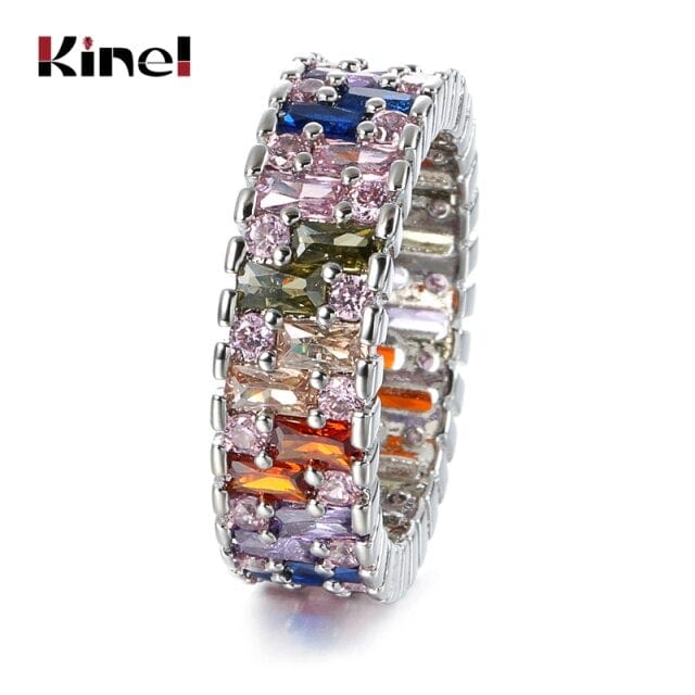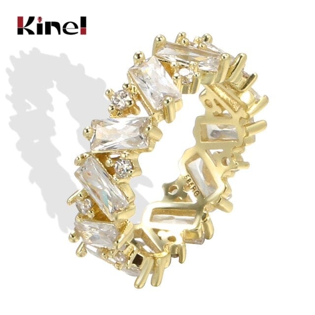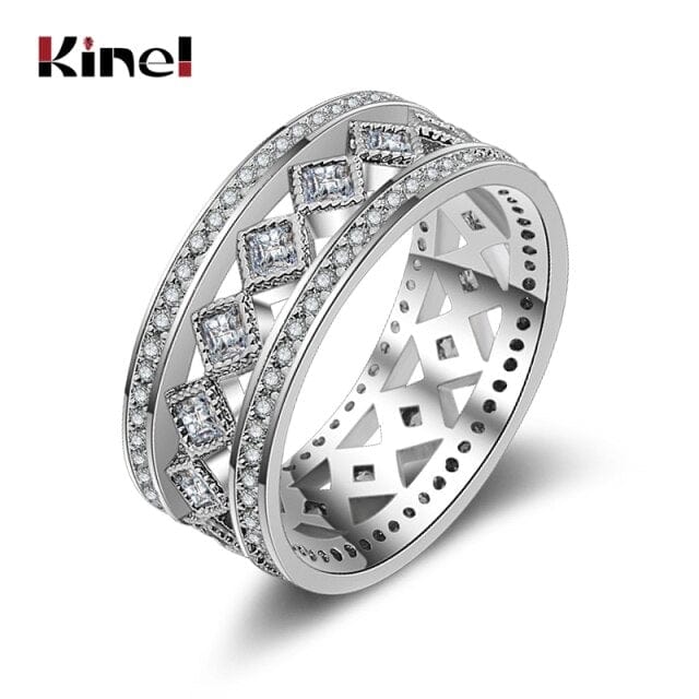 Kinel Fashion Bridal Wedding Ring Princess Cut 1 CT White Zircon Engagement Rings 925 Sterling Silver Party Crystal Jewelry