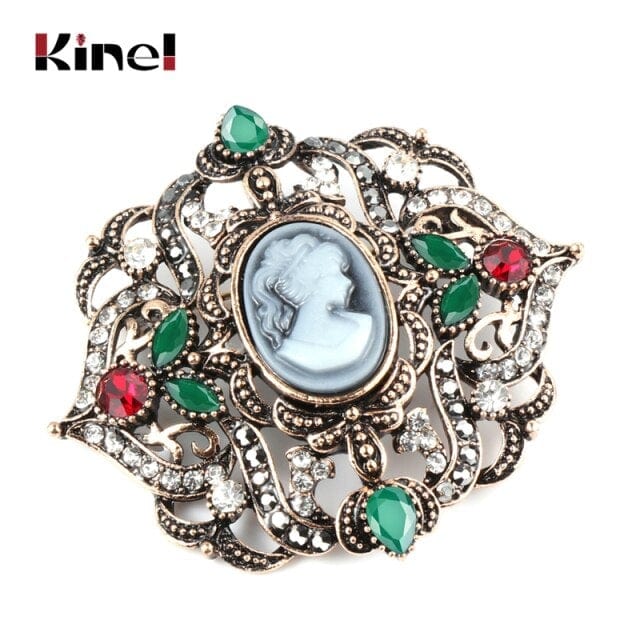 Kinel Fashion Women Brooch Antique Gold Crystal Flower Hollow Lady Queen Cameo Brooch Vintage Wedding Jewelry Christmas Gift