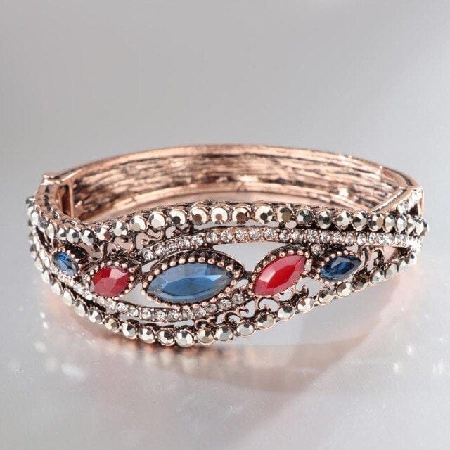 Kinel Hot Beautiful Trendy Crystal Bracelet Turkish Hollow Flower Bangle Antique Gold Color Retro Jewelry Party Accessories
