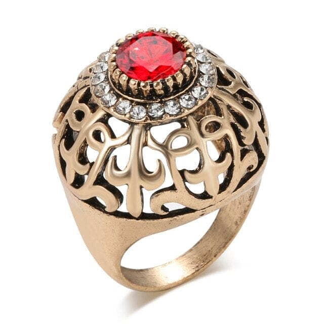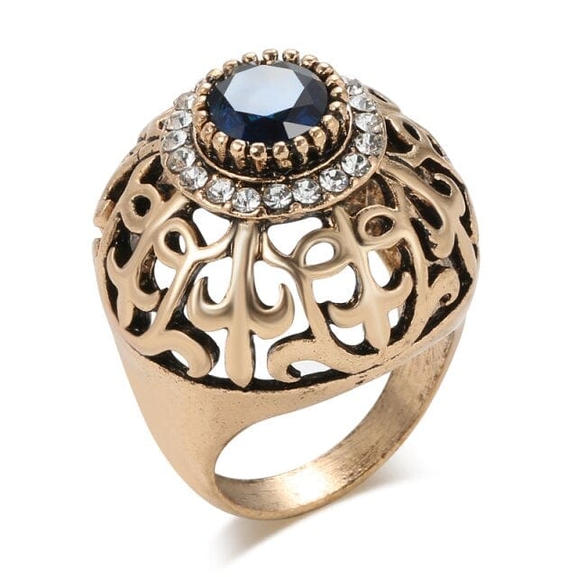 Kinel Hot Fashion Dubai Gold Big Antique Ring Women Hollow Crystal Flower Green Resin Wedding Ring Vintage Jewelry