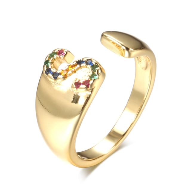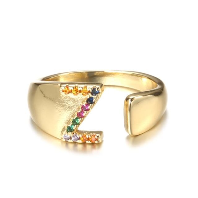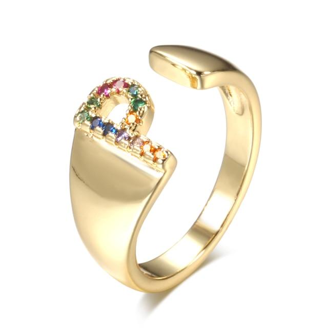 Kinel Hot Sale Adjustable A-Z Initial Ring Bohemian Copper Zircon Rainbow Letter Ring for Women Girls Party Wedding Jewelry Gift