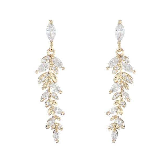 Kinel Luxury 14K Real Gold Plated Leaves Drop Earrings Delicate Micro Inlaid Cubic Zircon Earrings Bride Wedding Jewelry