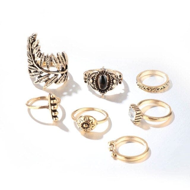 Kinel Luxury Black Enamel Knuckle Rings For Women 7pcs/Ste Retro Midi Ring Mixed Size 2017 Fashion Christmas Gift