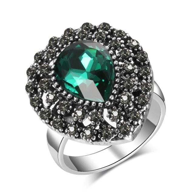 Kinel Luxury Fashion Big Water Drop Ring For Women Silver Color Blue Stone Bride Wedding Rings Turkish Jewelry Best Gift