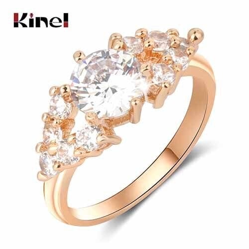 Kinel Luxury Female White Bridal Wedding Ring Fashion Silver Color Filled Jewelry Promise CZ Stone Engagement Rings For Women