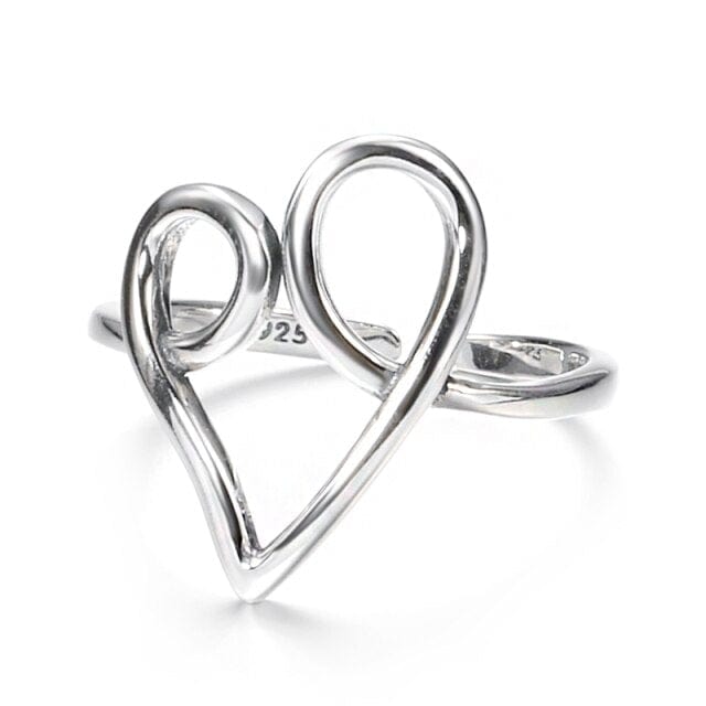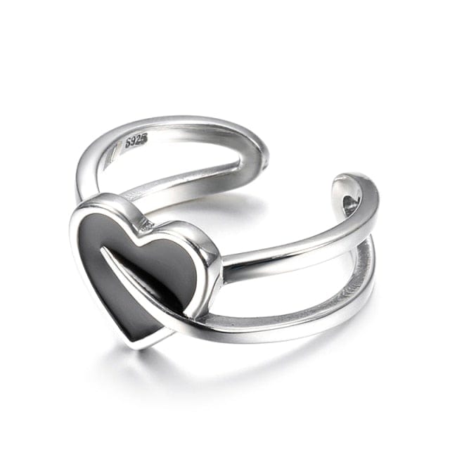 Kinel Minimalism 100% 925 Sterling Silver Heart Rings for Women Adjustable Size Finger Black Enamel Ring Wedding Band Jewelry