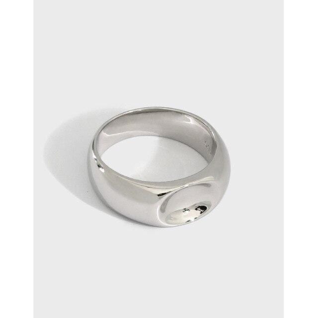 Kinel Minimalist Finger Rings for Women Silver 925 Jewelry Ellipse Concave Glossy Anillos Wedding Fashion Accessories
