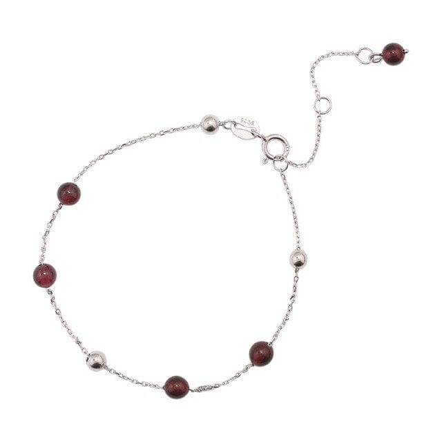 Kinel Natural Garnet Bracelet Genuine 925 Sterling Silver Simplicity Round Beads Bracelets for Women Jewelry Gift