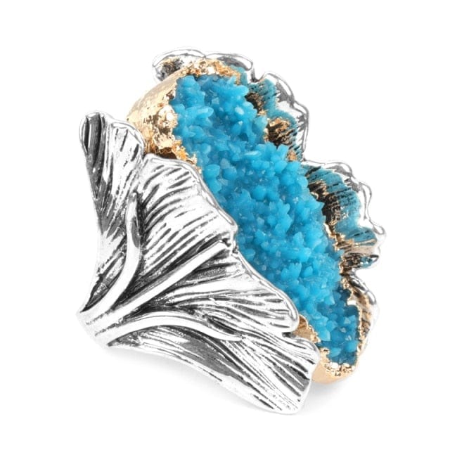 Kinel Natural Stone Vintage Big Women Ring Antique Tibetan Silver Fashion Red Crystal Flower Bride Wedding Rings Party Gift