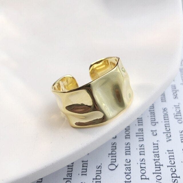 Kinel Real 925 Sterling Silver Creative Handmade Rings Irregular Wave Smooth Engagement Jewelry for Women Size 16mm Adjustable