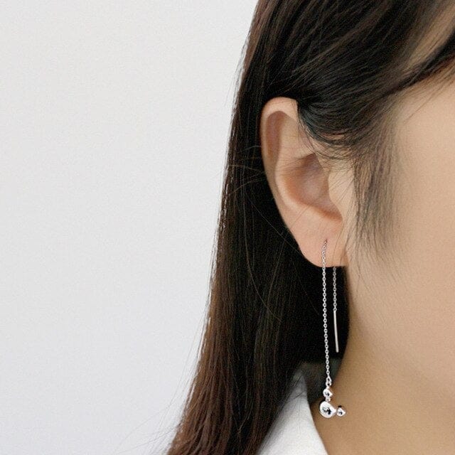 Kinel Real 925 Sterling Silver Rose Gold Earrings Korea 2020 New Beads Chain Line Long Silver Earrings For Women Party Jewelry