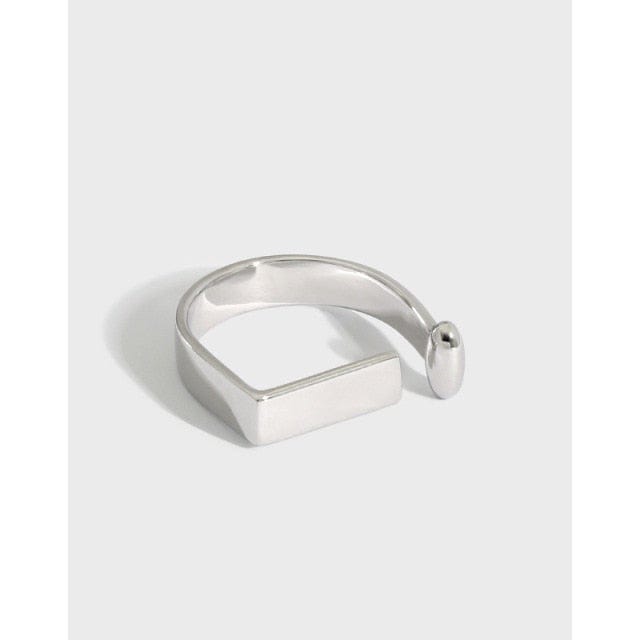 Kinel Ring for Women Silver 925 Jewelry Minimalist Geometric Rectangular Smooth Surface Anti-allergy Anillos Bijoux