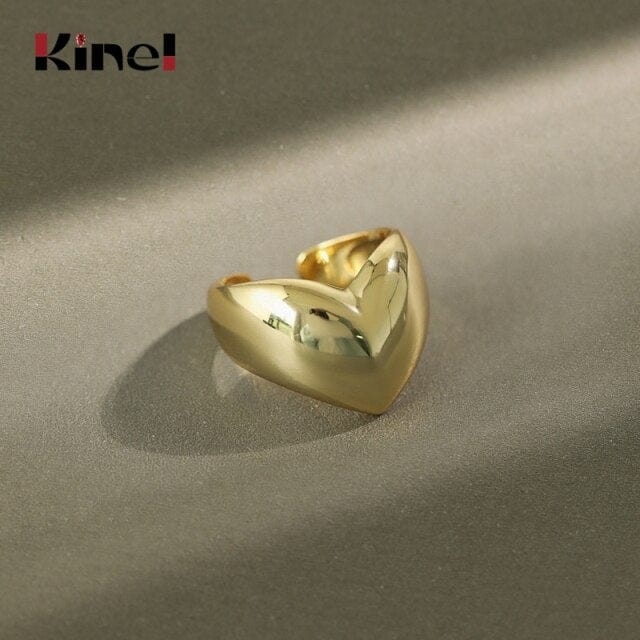 Kinel Ring Ladies Sterling Silver 18K Plating Real Gold Simple Heart Shaped Wide Open Glossy Finger Silver 925 Ring Fine Jewelry