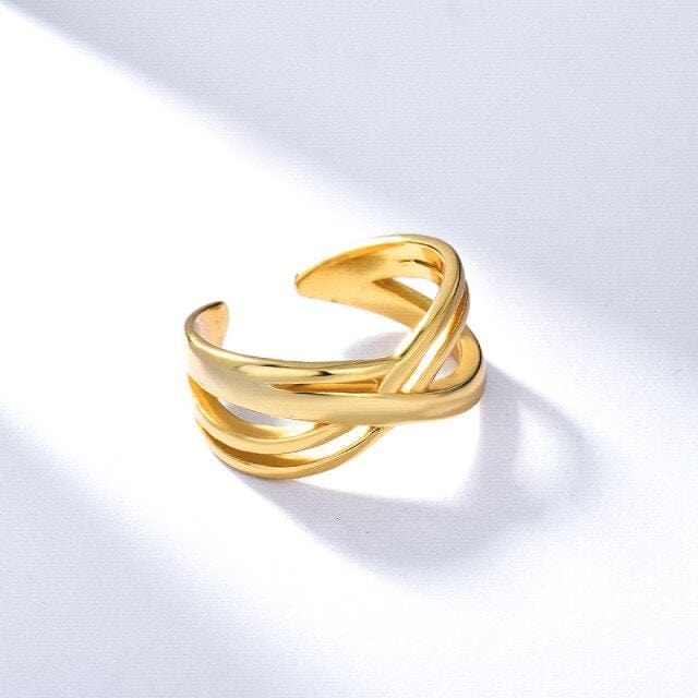 Kinel Silver 925 Jewelry Crossing Lines Rings for Women Minimalist Korea 18K Real Gold Plated Fashionable Anillos Gifts