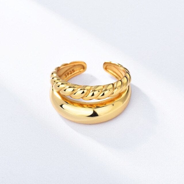 Kinel Silver 925 Jewelry European and American Fashion Rings for Women Double Twist 18K Real Gold Plated Anillos