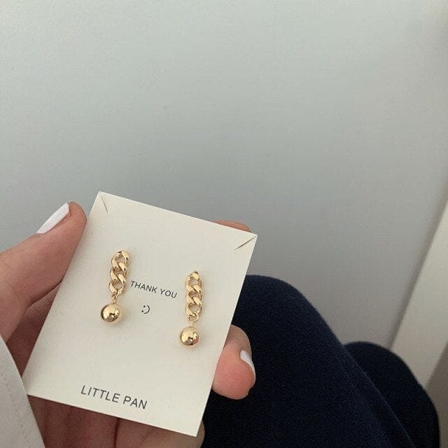 Kinel Silver 925 Jewelry Round Bead Chain Earrings Plating 14K Real Gold Style Sterling Silve Earring For Women Fine Jewelry