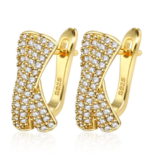 Kinel Trendy X Letter Shape Cubic Zirconia Stud Earrings For Women Fine Jewelry Gold Color Wedding Earrings Party Jewelry Gift