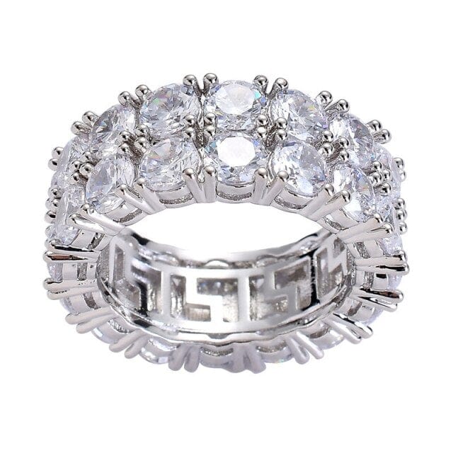 Kinel Two Row Solitaire Men's Ring Copper Charm Gold Color Cubic Zircon Iced RING Fashion Hip Hop Jewelry