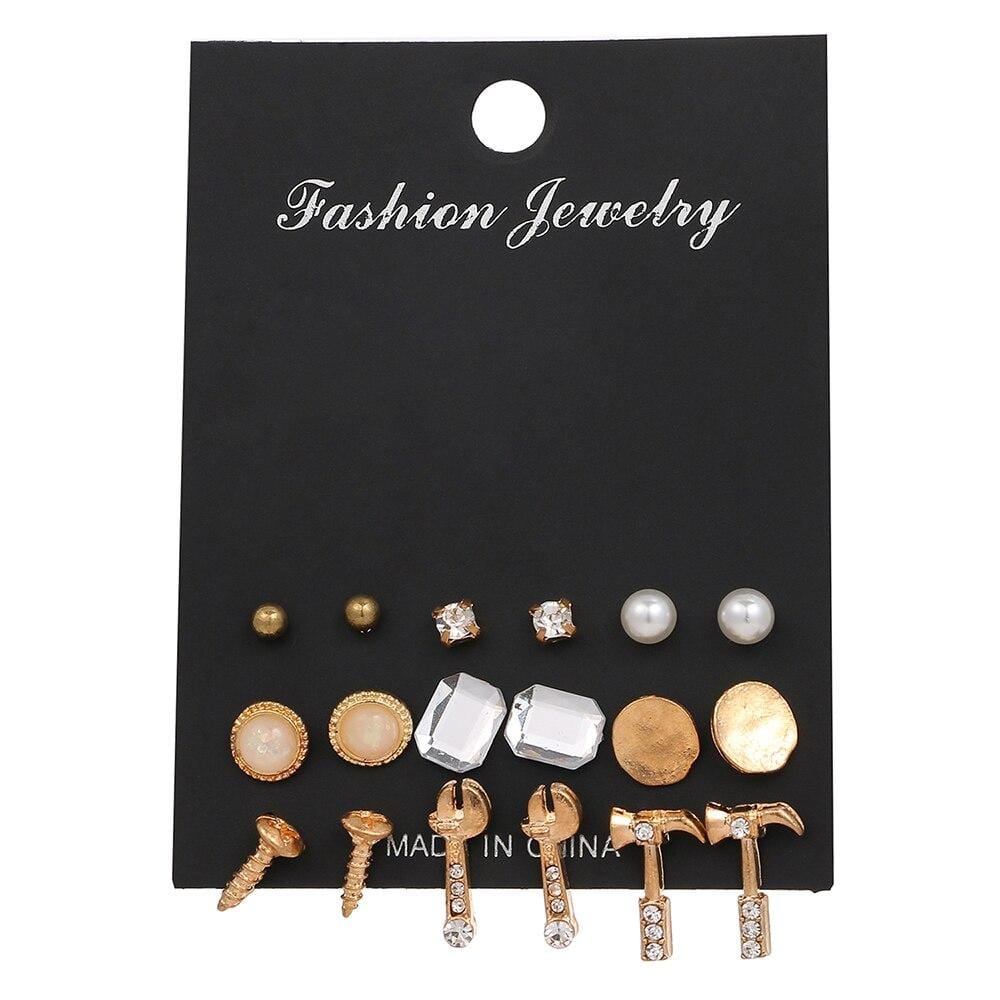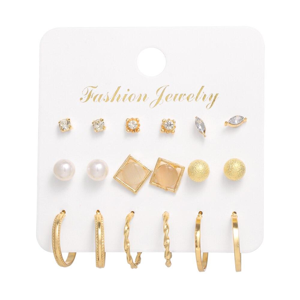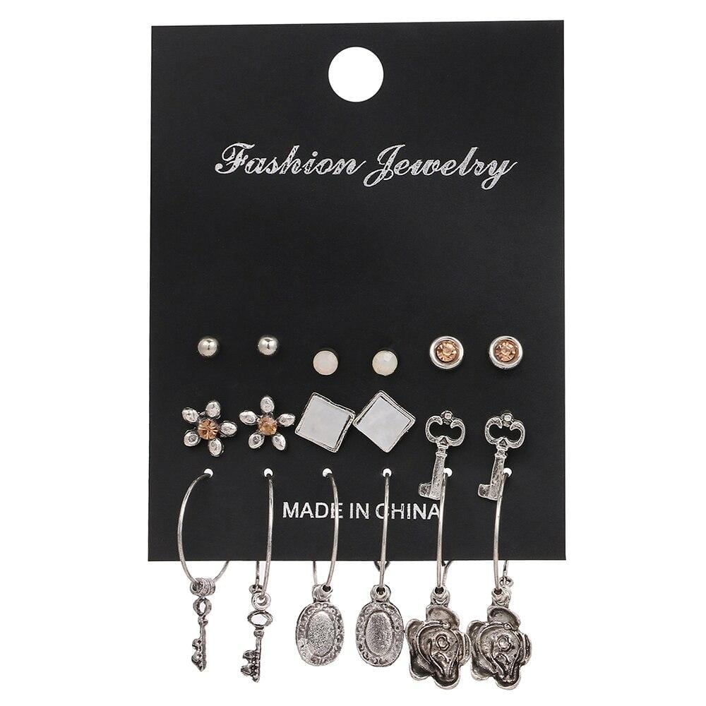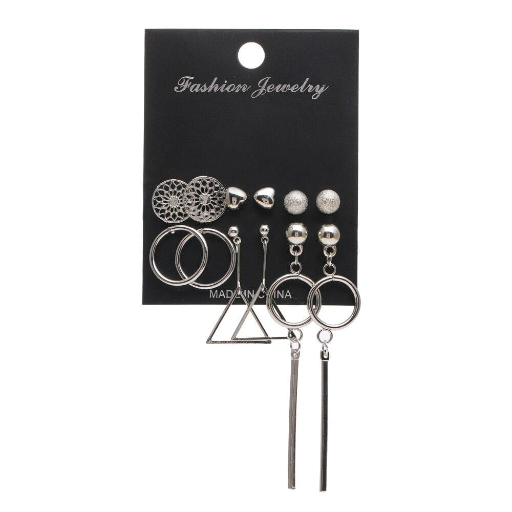 FNIO 2021 Hot Sale Fashion Bohemian Earrings Set For Women Trendy Flower Round Geometric Metal Stud Earring Female Jewelry