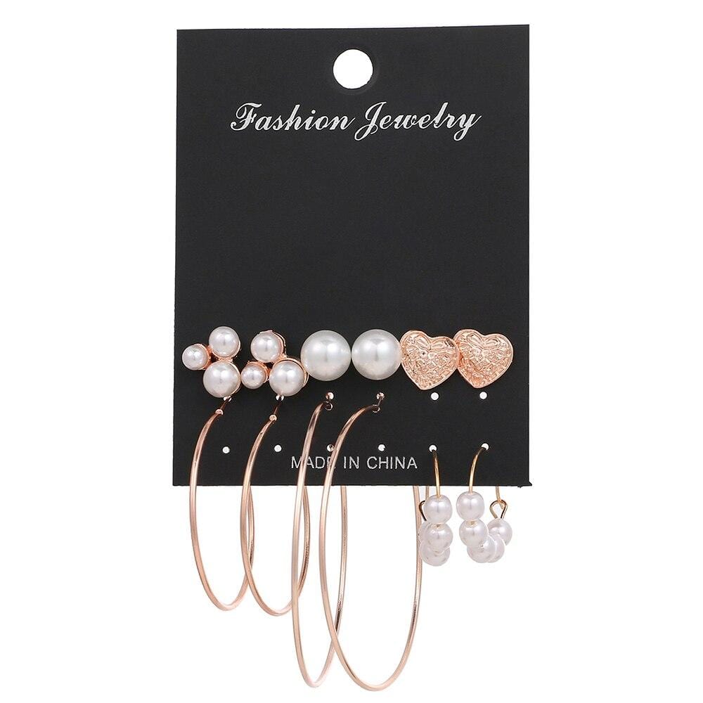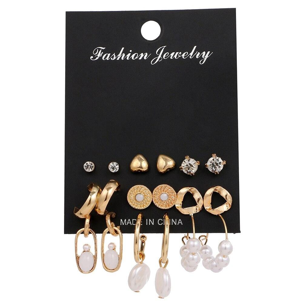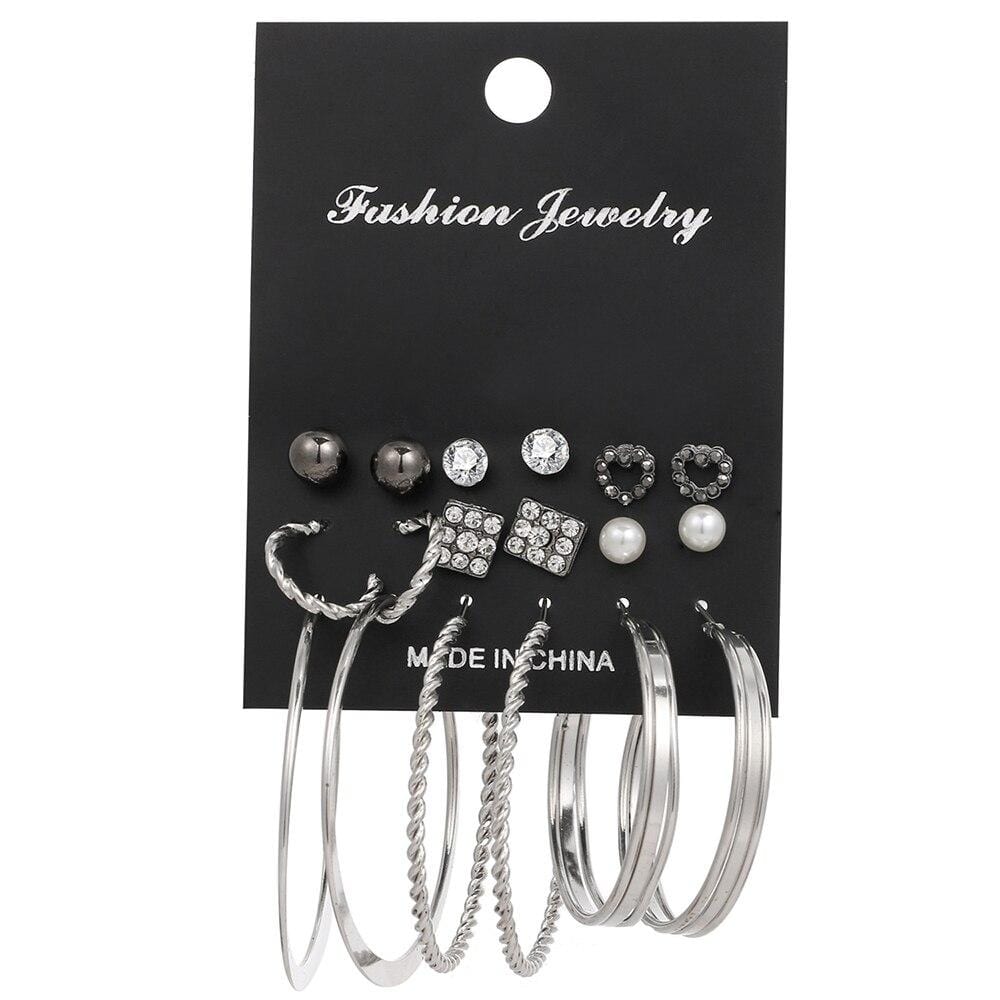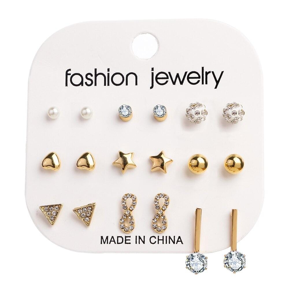 FNIO 2021 Hot Sale Fashion Bohemian Earrings Set For Women Trendy Flower Round Geometric Metal Stud Earring Female Jewelry