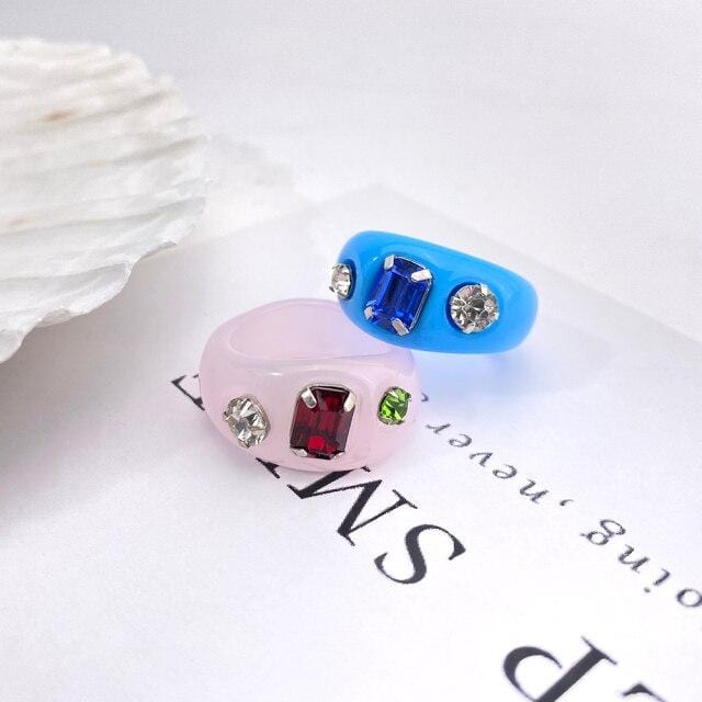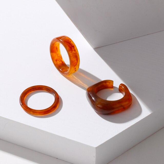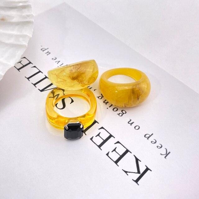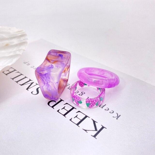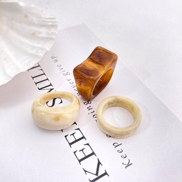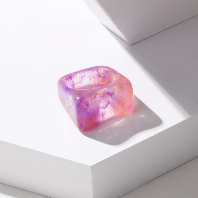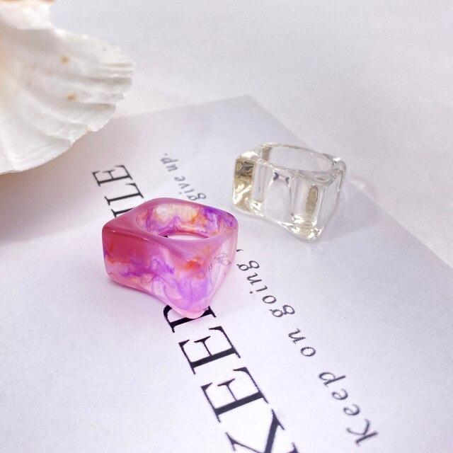 FNIO 2021 New Colorful Transparent Acrylic Irregular Marble Pattern Ring Resin Rings for Women Girls Jewelry