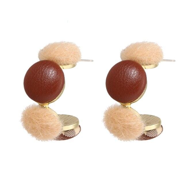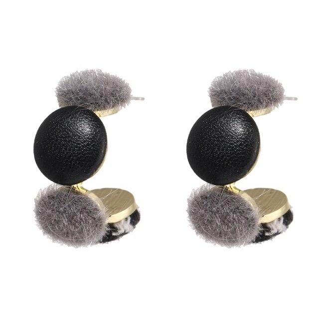 FNIO 2021 New Plush Pompom Check C Shape Round Earrings For Women Trendy Geometric Statement Earrings Fashion Party Jewelry Gift