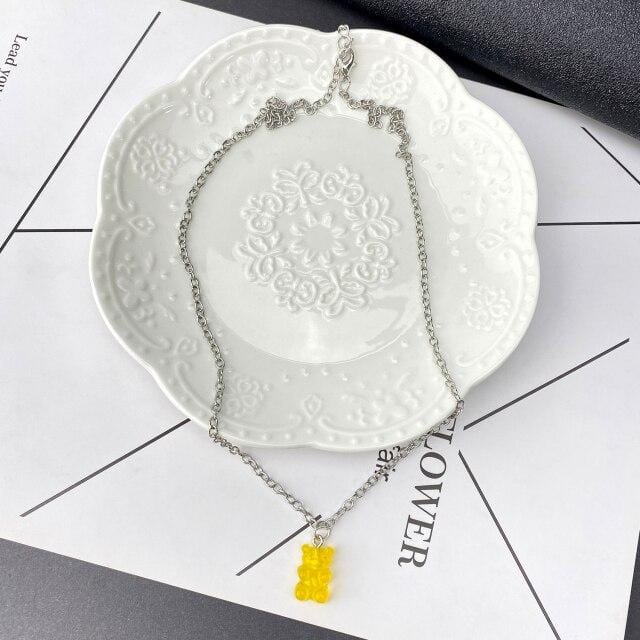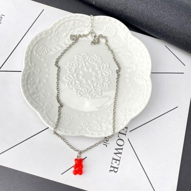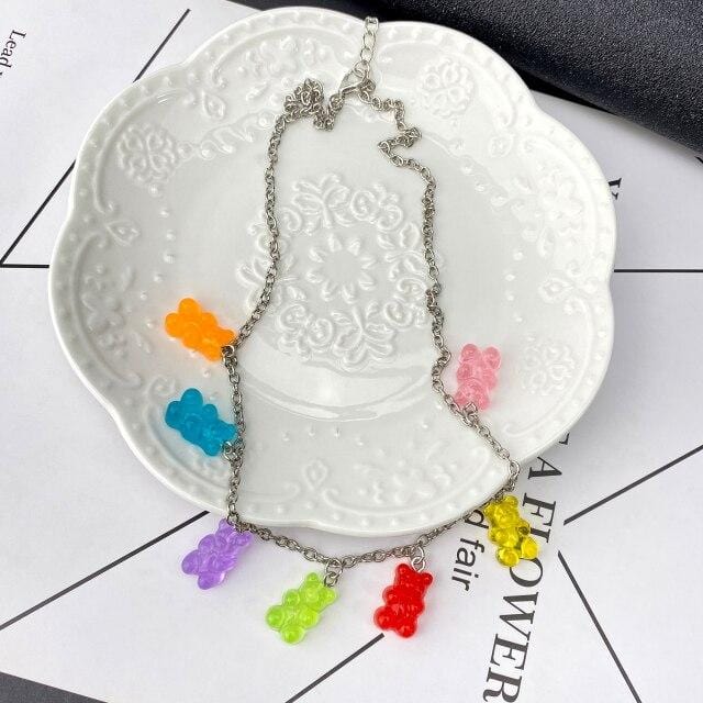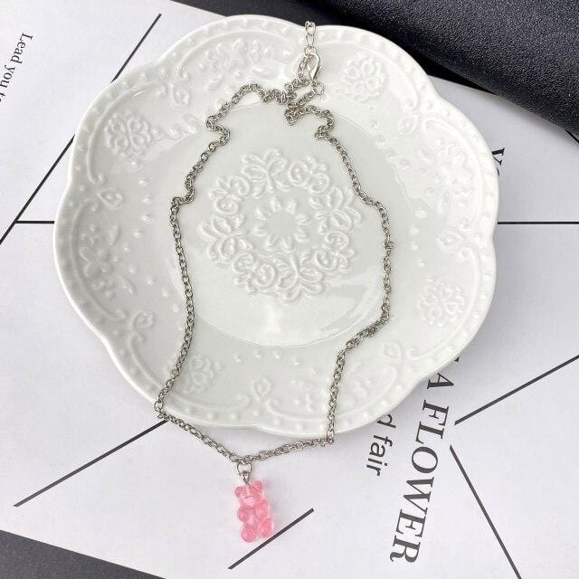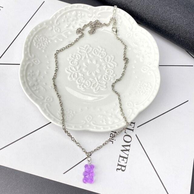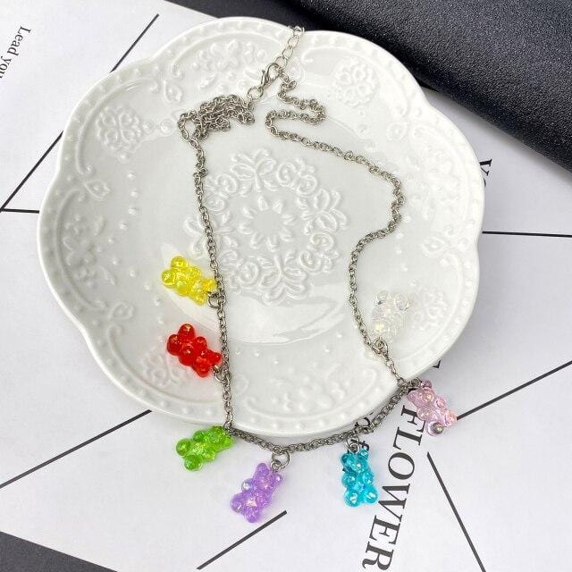 FNIO Candy Color Gummy Mini Bear Necklace for Women Christmas Gifts New Collare Star Pendants Necklaces Jewelry Femme