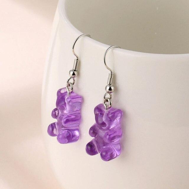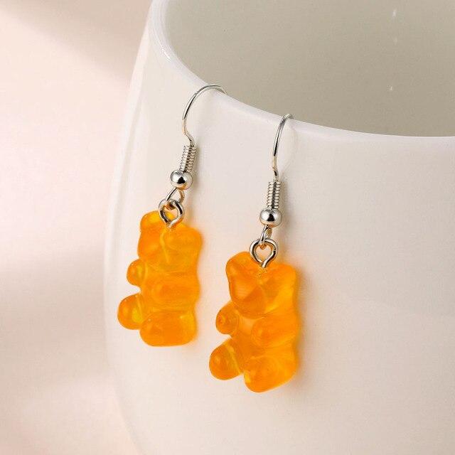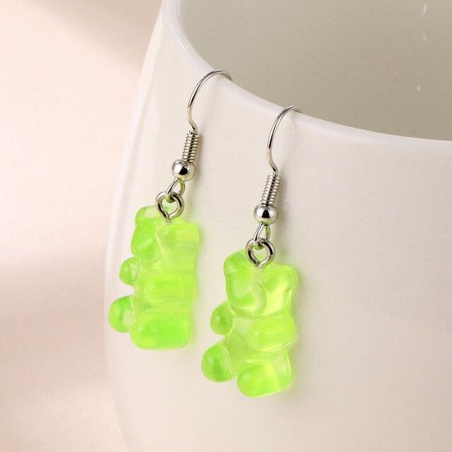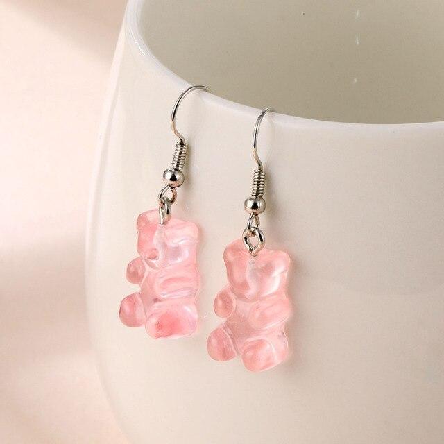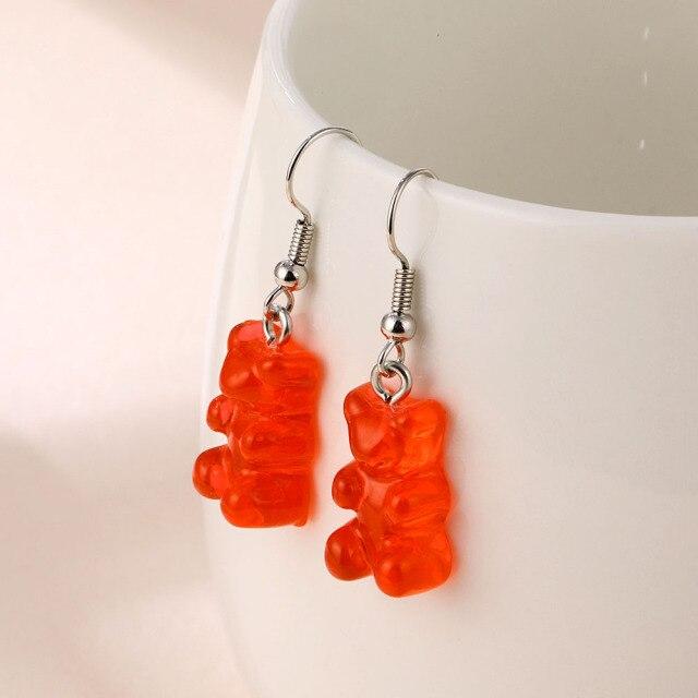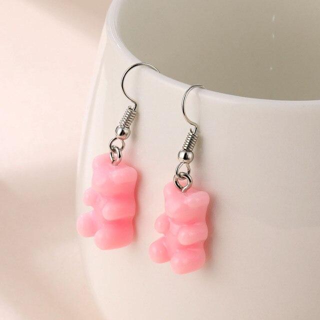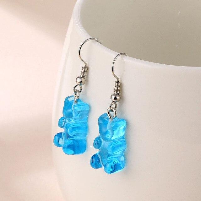 FNIO Creative Statement Minimalist Dangle Earrings Jelly Polychromatic Bear Drop Earrings Fashion Cute Stud Earings For Women
