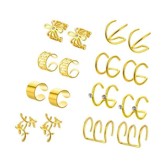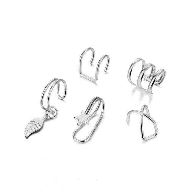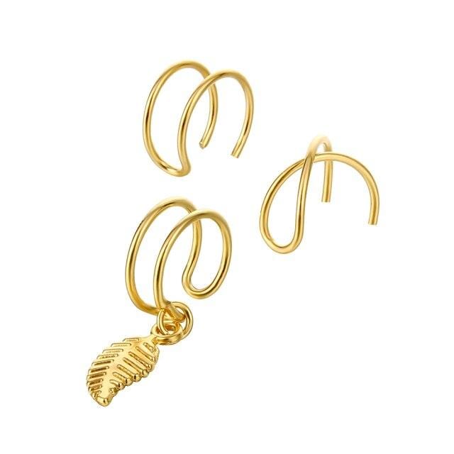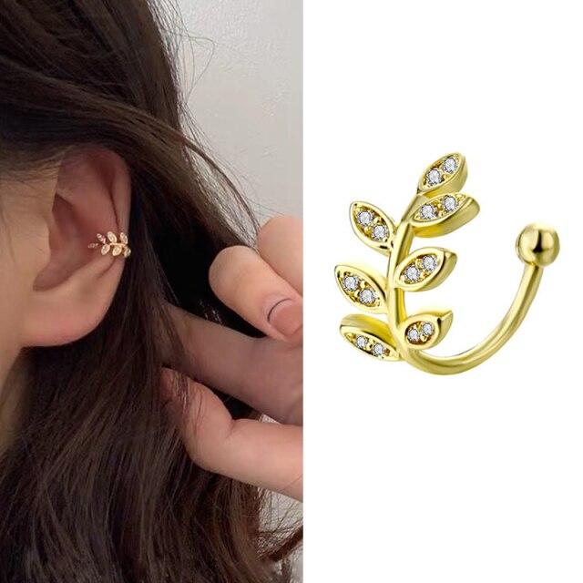 FNIO Ear Clips Jewelry Fashion Personality Metal Ear Clip Leaf Tassel Earrings For Women Gift Pendientes Ear Cuff Caught In Cuff