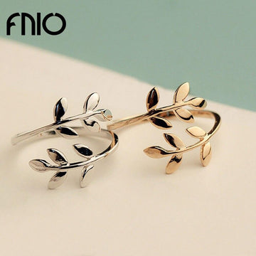 FNIO Fashion simple Olive Tree Branch Leaves Open Ring for Women Girl Wedding Rings Adjustable Knuckle Finger Jewelry Xmas
