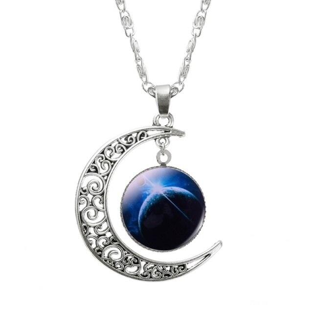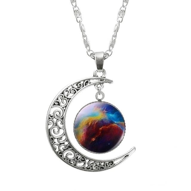 FNIO Hot Fashion Jewelry Choker Necklace Glass Galaxy Lovely Pendant Silver Color Chain Moon Necklace Jewelry Gift