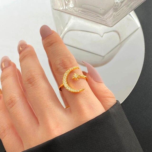 FNIO Minimalist Zircon Moon Star Leaves Opening Ring For Charming Women Party Fine Jewelry Cute 2021 Gift