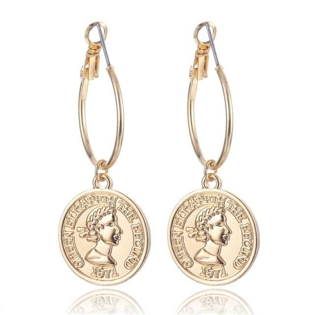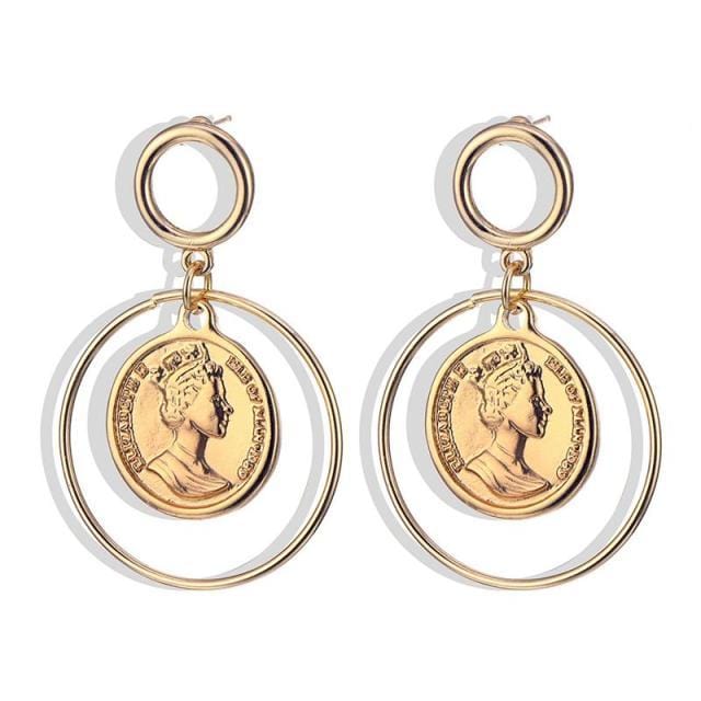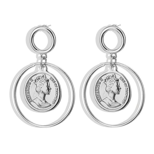 FNIO new fashion people avatar pendant earrings female models bohemian long paragraph coins earrings jewelry gifts