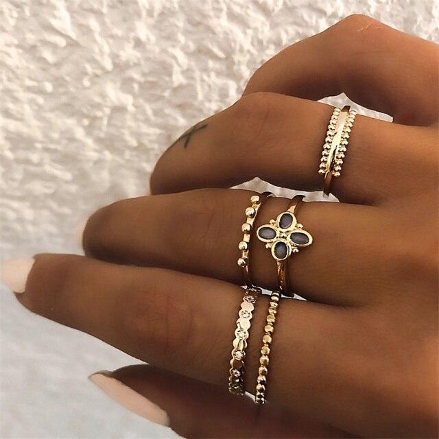 FNIO New Retro Design Crystal Star Moon Ring Set Women's Ring Bohemian Jewelry