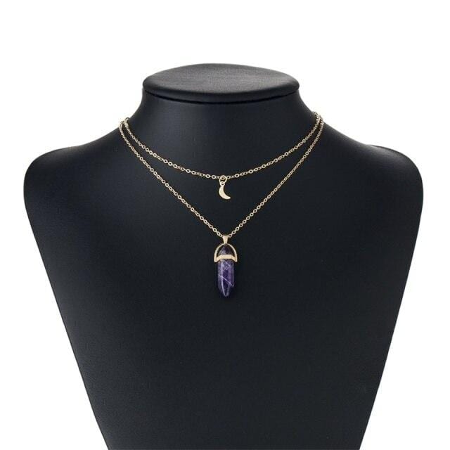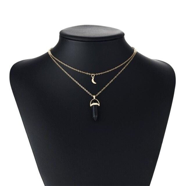 FNIO New Style Double Layer Moon Pendant&Neckalce Fashion Punk Geometric Metal Chain Necklaces For Women Boho Party Jewelry Gift
